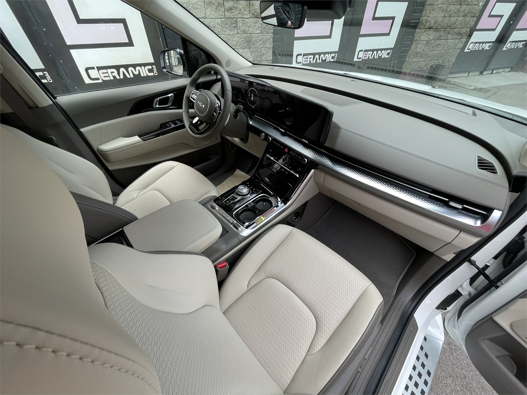 Химчистка салона KIA Carnival без разбора, мойка двигателя с консервацией, восстановительная полировка кузова и нанесение 3-х слоев керамики, обработка кожаных и пластиковых элементов салона керамическим покрытием. Высокое качество и профессионализм в детейлинг-центре Алматы.