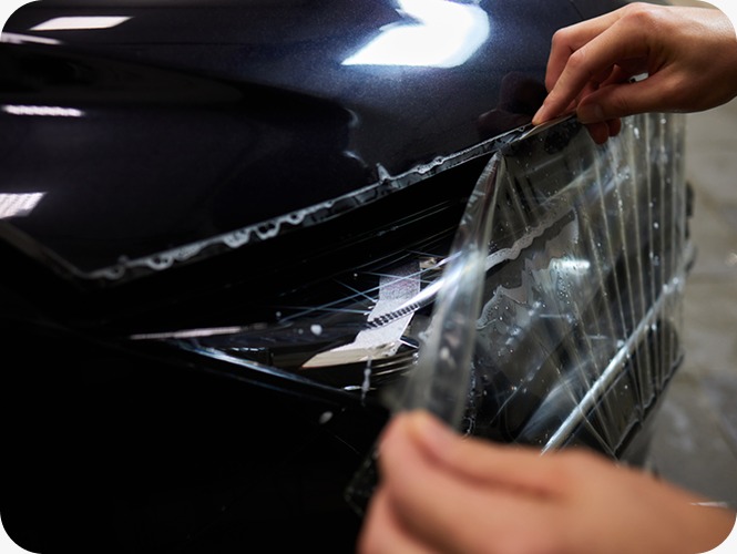 Мы защищаем оптику автомобиля прозрачным полиуретаном. Это помогает сохранить прозрачность фар, защищает их от помутнения и глубоких царапин. Работаем быстро, аккуратно и используем только плотный материал, который хорошо пропускает свет фар.