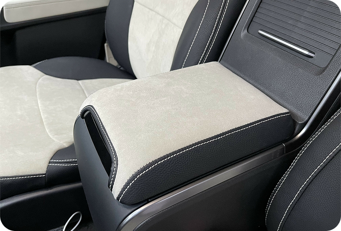 Мы работаем не только с центральным боксом, но и с подлокотниками в дверных картах. Часто заводской пластик или жесткая ткань в этих зонах доставляют дискомфорт. Мы можем сделать их мягкими и обтянуть премиальной кожей, экокожей или замшей.